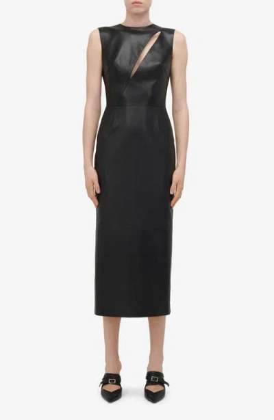 Alexander Mcqueen Cutout Leather Midi Dress In Black