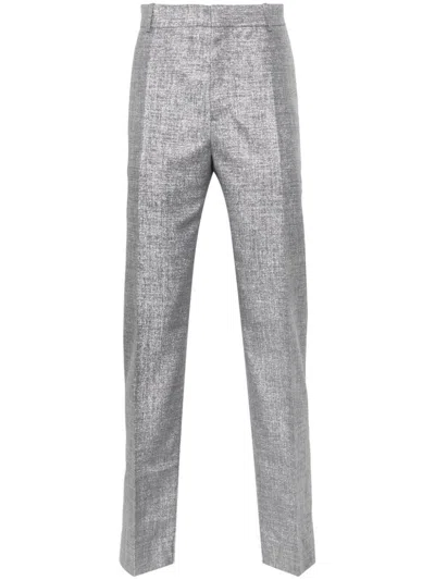 Alexander Mcqueen Metallic Straight Tailored Trousers In Grey