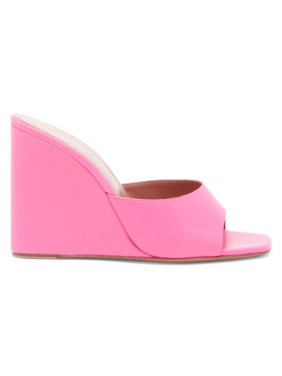 Amina Muaddi Lupita Leather Wedge Mules In Pink