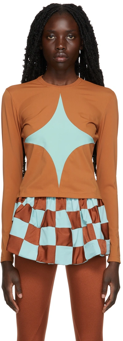 ANDREJ GRONAU Ssense Exclusive Brown & Blue Star Long Sleeve T-shirt In Brown Mint