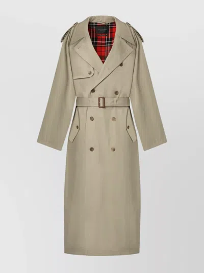 Coordinated waist belt | Lapel collar | Epaulettes on the shoulders | Storm shield | Garde-Robe Line | Buttoned wrist straps | Double-breasted fastening