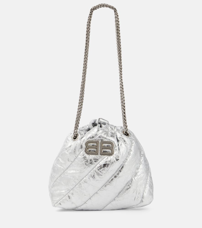 Balenciaga Crush Mini Metallic Leather Crossbody Bag In Silver