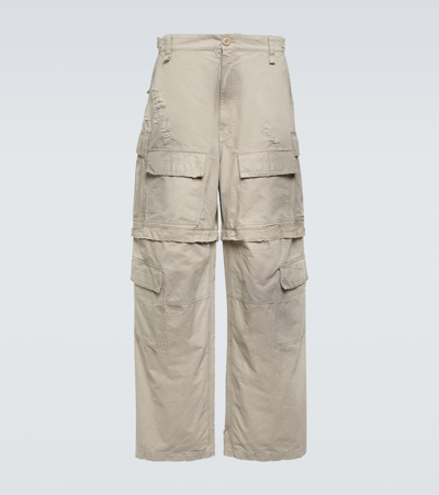 Balenciaga Convertible Distressed Cotton Cargo Pants In New Beige