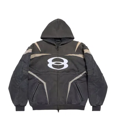 Balenciaga's zip-up hoodie has contrasting panels and textured ribbing inspired by classic motocross styles. Printed with a logo front and centre, it's made from heavyweight cotton-jersey and faded to look vintage.