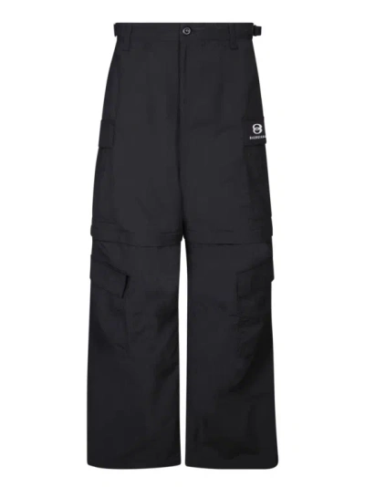 Ripstop trousers by Balenciaga. Cargo style. Oversize fit. Front logo. Front patch pockets.