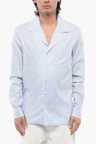 Balmain Awning Striped Cotton Pajama Shirt In Blue