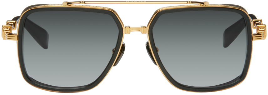 Aviator-style acetate- and metal-frame sunglasses in black and gold-tone. · Gray lenses · Logo etched at top and temple tip · Adjustable metal nose pads · Hardside case included · Size: 58.18 140 Supplier color: Black