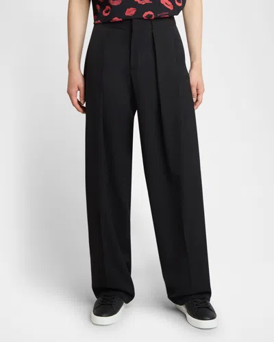 Balmain pants in solid wool gabardine Regular rise Pleated front Welt pockets Full length Wide legs Made in France
