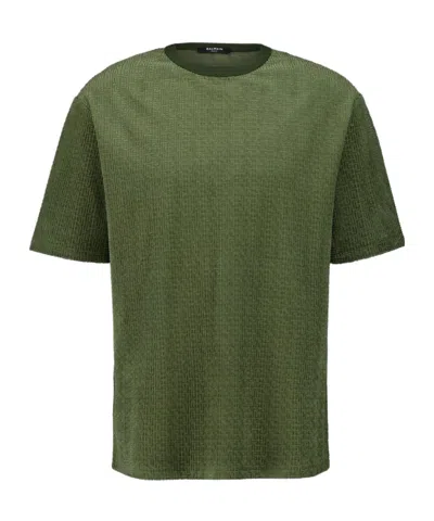 Balmain Velvet Monogram-pattern T-shirt In Green