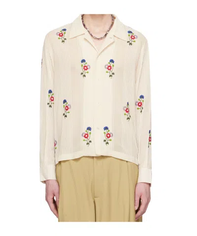 Bode's eclectic approach is woven into every stitch of the beaded wildflower shirt. Inspired by a beaded dress from the 1920s, this cotton shirt is delicately detailed with hand-embellished beadwork showcasing a pattern of white stripes and colourful floral bunches. A boxy fit with long sleeves, it's secured with five front buttons.