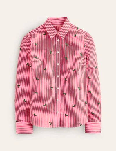 Boden Sienna Embroidered Shirtholly, Red Stripe Women  In Holly/ Red Stripe