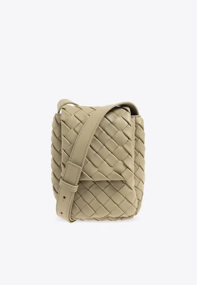 Bottega Veneta Mini Vertical Cobble Intrecciato Messenger Bag In Travertine