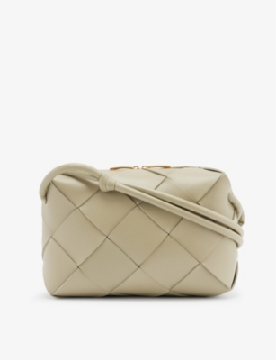 WOMENS TRAVERTINE CASSETTE SMALL INTRECCIATO LEATHER CROSS-BODY BAG