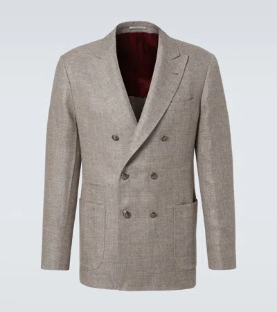 Brunello Cucinelli Double-breasted Linen, Wool, And Silk Blazer In Beige
