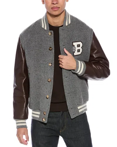 Brunello Cucinelli Leather Sleeve Wool Varsity Jacket