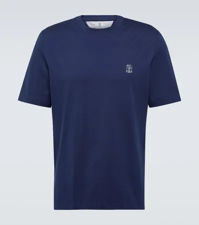 Brunello Cucinelli Logo-detail Cotton T-shirt In Blue