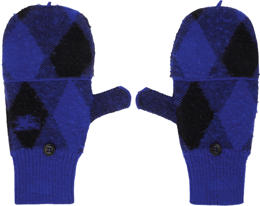 BURBERRY Blue & Black Argyle Wool Mittens In Knight + Black