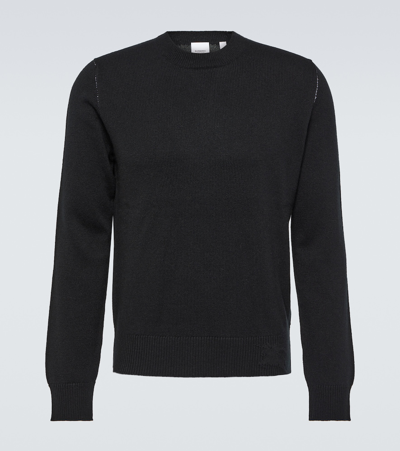 A symbol of British heritage, Burberry's Equestrian Knight Design signifies honor and the brand's commitment to always move forward. The motif appears on this black cashmere sweater.