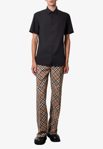 Burberry Embroidered Ekd Short-sleeved Shirt In Black