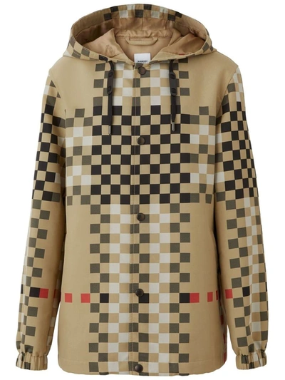 Burberry Beige Hooded Jacket With Pixel Check Motif In Polyamide Man