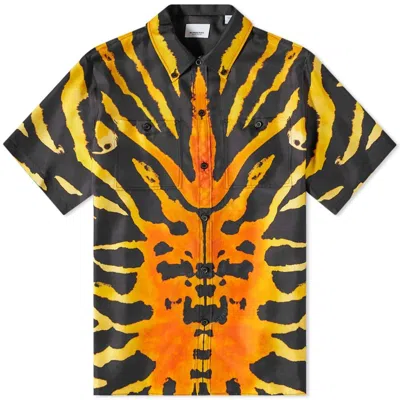Burberry Tiger Print Short Sleeve Silk Shirt In Orange
