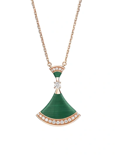 Bvlgari Yellow Gold Divas' Dream 18ct Rose-gold, 0.28 Brilliant-cut Diamond And Malachite Pendant Necklac In Rose Gold