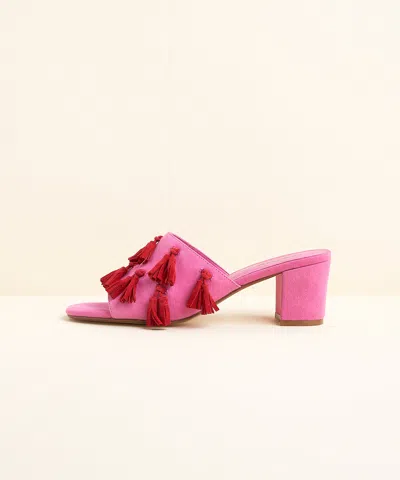 Our iconic Lenu style reimagined in bright suede with contrast colored tassels. Suede uppers, 2.5" heel, sleek rubber outsoles. The low heel style you know and love with fun new details to zhuzh up your wardrobe.