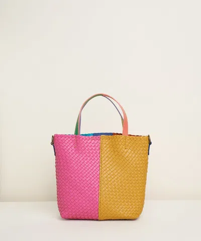Our first woven leather crossbody purse, in our best-selling Tropical and Kortman colorways. Interior magnet closure, top handles, removable crossbody strap, brass hardware. She's versatile with different colors on both sides, and just as fun as your favorite shoes.