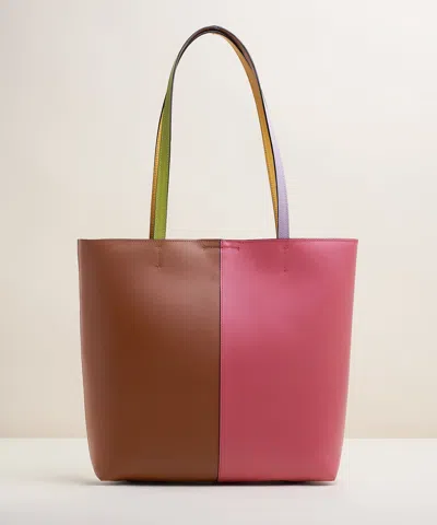 Our first full size leather tote bag, in our best-selling Nassau and Tropical colorways. Interior magnet closure, large interior flat pocket, 12" height, 15" top width, & 10.5" handle drop. She's versatile with different colors on both sides, professional in that she can hold a laptop, and just as fun as your favorite shoes.