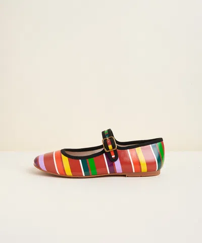 A brand-new collegiate style Mary-Jane ballet flat with multicolor striped leather uppers. Adjustable strap, memory foam insoles, rubber outsoles. Put some prep in your step and some stripes in your life ✨