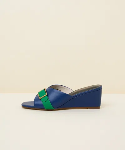An all new two-tone leather mini wedge inspired by our Raf platform style.two-tone nappa leather uppers 2.75" heel height on Spanish rubber outsoles decorative buckles fits like Belle or Lenu