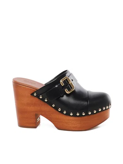 Featuring lustrous metallic accents and a classic Paddington buckle, this clog boasts an 11 cm heel height. Crafted in Italy. Made from 100% glossy cowhide..