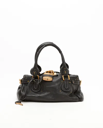 Chloé Medium Paddington Bag- Black pebbled leather- Aged gold-tone hardware- Dual rolled top handles- Black canvas lining with an internal zipped pocket- Top zip closure with signature padlock and key- VintageOverall Preloved Condition: Very Good.Exterior Condition: Very Good. Light trace of use.Interior Condition: Very Good. Light trace of use.Hardware: Shiny with scratches and discoloration.Delivered with padlock and keyMade in ItalyDimensions:Height 13 cmWidth 36 cmDepth 20 cmHandle drop 20 cmStrap drop 25 cmPlease note that the majority of our items are vintage and therefore have tales to tell unless stated otherwise. Therefore, please look at pictures, descriptions and measurements provided as they give you the best idea of the story this item has to tell.* Please note that when you buy a vintage product, the dimensions may vary slightly from a new one depending on previous care and storage.