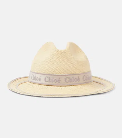 Chloé Woody Logo Straw Panama Hat In Beige