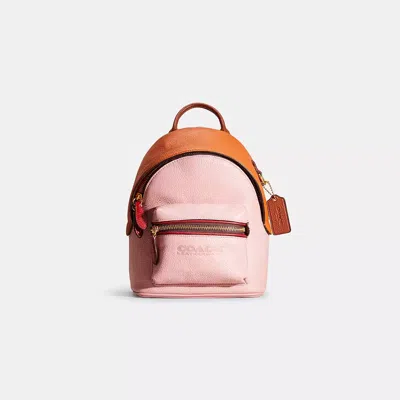 A little (re)love goes a long way. This Charter Backpack 18 is a gently worn design restored to its original condition by the talented craftspeople at our Coach Repair Workshop. Passed along from members of the Coach community like you it helps to keep bags out of landfills and reduces our impact on the environment-part of our commitment to doing better for the planet (and all of us). A feel-good find it's your chance to get one of our most-loved styles if you missed out the first time. Wear it love it pass it on. The Charter is a petite backpack with an old-school silhouette and space for an i Pad and daily essentials. Crafted of colorblock refined leather the 18 is finished with a side D-ring to attach a small case or bag charm and detachable lightweight webbing straps. Coach Restored Charter Backpack 18 In Colorblock - Women's - Brass/pink Multi