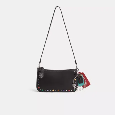 Pre-owned and now (re)loved this Penn Shoulder Bag is a very special Coach upcrafted design inspired by our commitment to rethinking and reducing our impact on the planet. Saved from the landfill this gently-worn bag was lovingly repaired and transformed by our in-house craftspeople who added clever details to give it a second life. It's completely one-of-a-kind and comes with its own unique set of charms. Wear it love it pass it on. Reimagined with striking border rivet detailing by Rose Oliva featuring gleaming border studs and colorful cabochons this slim style has been expertly cleaned conditioned and restored. Our talented craftsperson Alex Lodato embellished the front with eclectic embellishments and added a playful repurposed charm. Inspired by archival Coach Y2K designs but perfected for today our Penn bag is effortlessly minimalist. Finished with our iconic turnlock closure on the zipper pull the buttery soft glovetanned leather style can be worn on the shoulder or carried as a clutch. Coach Upcrafted Penn Shoulder Bag - Women's Purses - Silver/black
