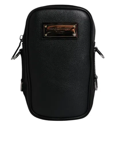 Dolce & Gabbana Black Nylon Leather Logo Plaque Crossbody Sling Bag