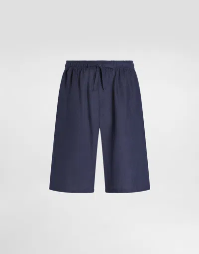 Linen shorts with tonal DG logo embroidery: Blue Regular fit Stretch waistband with drawstring Front slant pockets and back pocket The item measures 58 cm on the outer leg and the hem is 32 cm wide on a size IT 48 Made in Italy