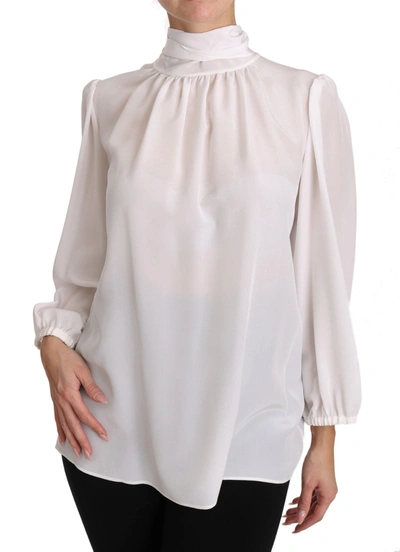 Dolce & Gabbana White Silk Blouse Pussybow Solid Longsleeve Women's Top