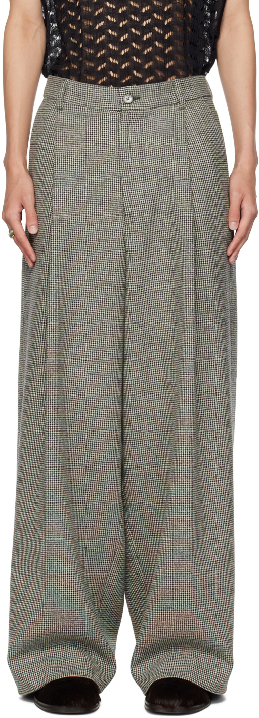 DRIES VAN NOTEN Black & White Check Trousers In 900 Black
