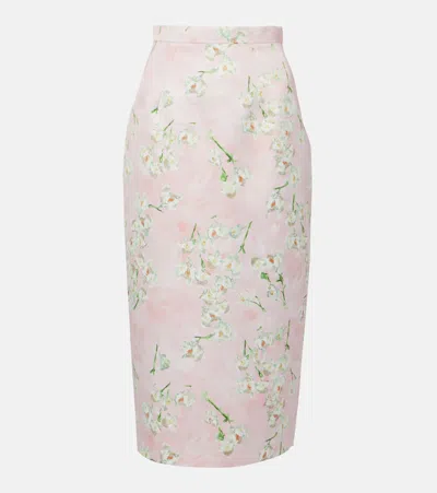 Emilia Wickstead Lorelei Floral Taffeta Faille Pencil Skirt In Lillies On Pink