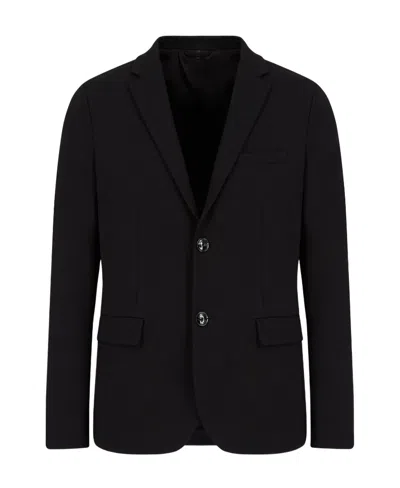 Emporio Armani Stitched-jersey Single-breasted Jacket In Black