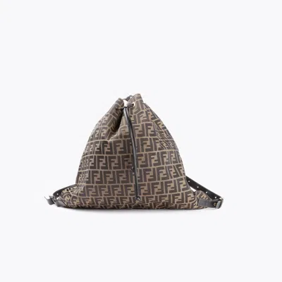 FENDI Zucca Rucksack- Gold-tone hardware- Brown Zucca canvas- Black leather trim- Double flat adjustable shoulder straps- Green jacquard lining with single interior zip pocket and drawstring closure at topOverall Preloved Condition: Very Good.Exterior Condition: Very Good. Light wear at shoulder strap.Interior Condition: Very Good. Clean with light trace of use.Hardware: Faded with light scratches.Delivered with no accessoriesMade in ItalyDimensions:Height 45 cmWidth 50 cmDepth 5 cmShoulder strap drop 30 cmPlease note that the majority of our items are vintage and therefore have tales to tell unless stated otherwise. Therefore, please look at pictures, descriptions and measurements provided as they give you the best idea of the story this item has to tell.