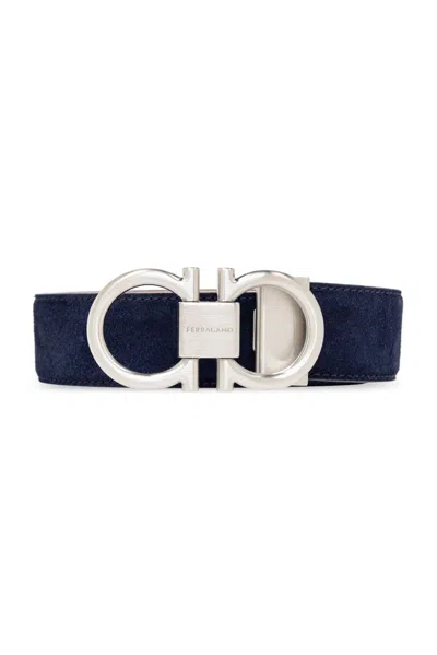 Ferragamo Gancini Leather Belt In Blue