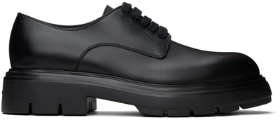 Ferragamo Black Chunky Lace Up Derbys In Nero
