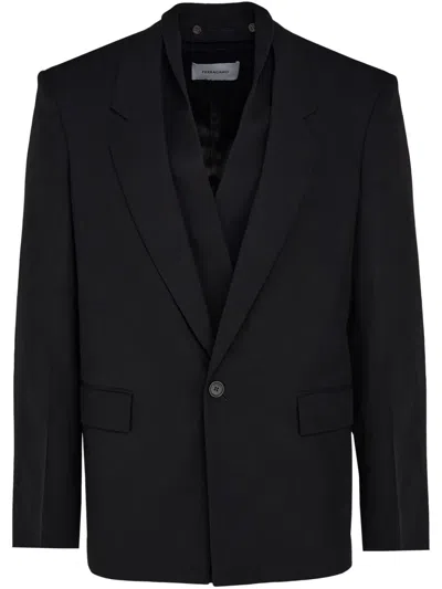 black front button fastening long sleeves two side flap pockets buttoned cuffs