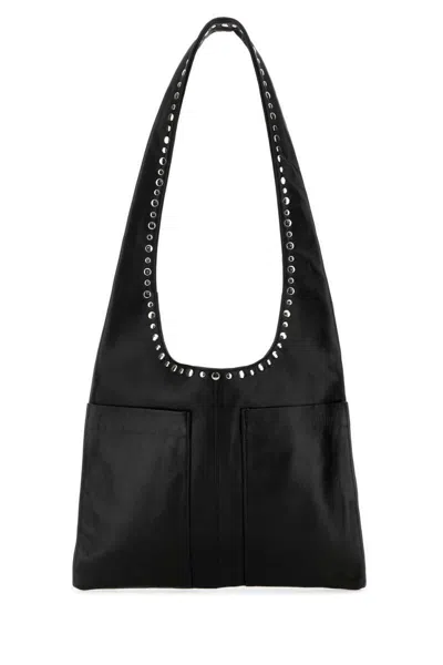 Black leather Blanca shoulder bag Width: 33 cm Height: 27 cm Depth: 2 cm Handle height: 38 cm. Gender: Women. Material: EXTERIOR: 100% LEATHER LINING: 100% FABRIC FINISHING: SILVER METAL. Color: Black. Made in: ES. Product ID: BLANCABAG BLACK. *Import tax/duty will be calculated at checkout (If applicable)