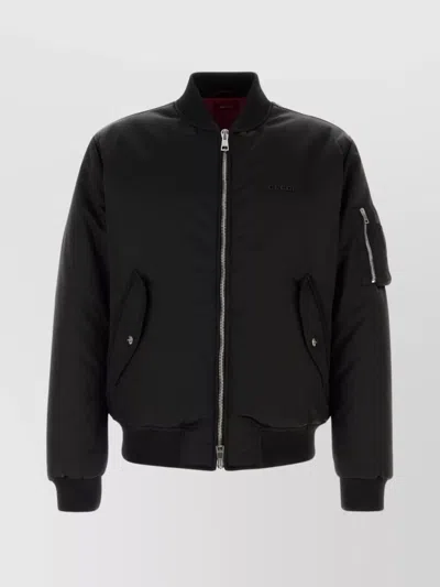 Gucci Bomber Jacket Nylon Ribbed Cuffs In Black
