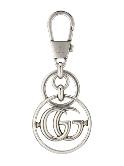Double G logo keychain from Gucci featuring silver-tone, metal, signature Double G logo, engraved logo and lobster claw fastening.