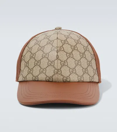 Gucci Gg Canvas Leather-trimmed Baseball Cap In Beige/ebony+dk Sundi
